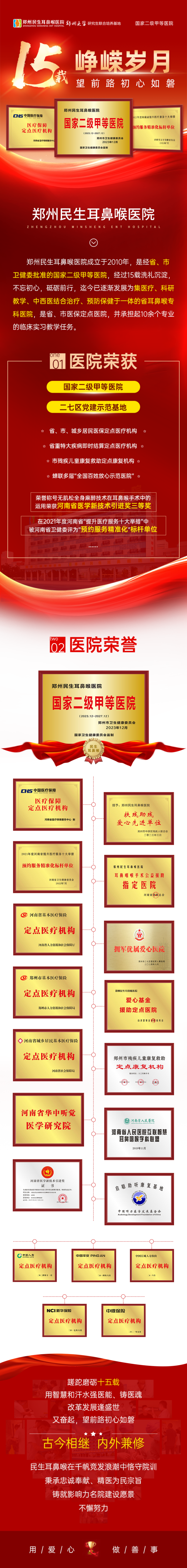 “诚信民生,专业耳鼻喉”的理念,持续提升医疗质量与服务温度,努力为每一位患者提供安全、精准、有温度的诊疗服务,致力于打造中原地区值得信赖的耳鼻喉专科标杆。