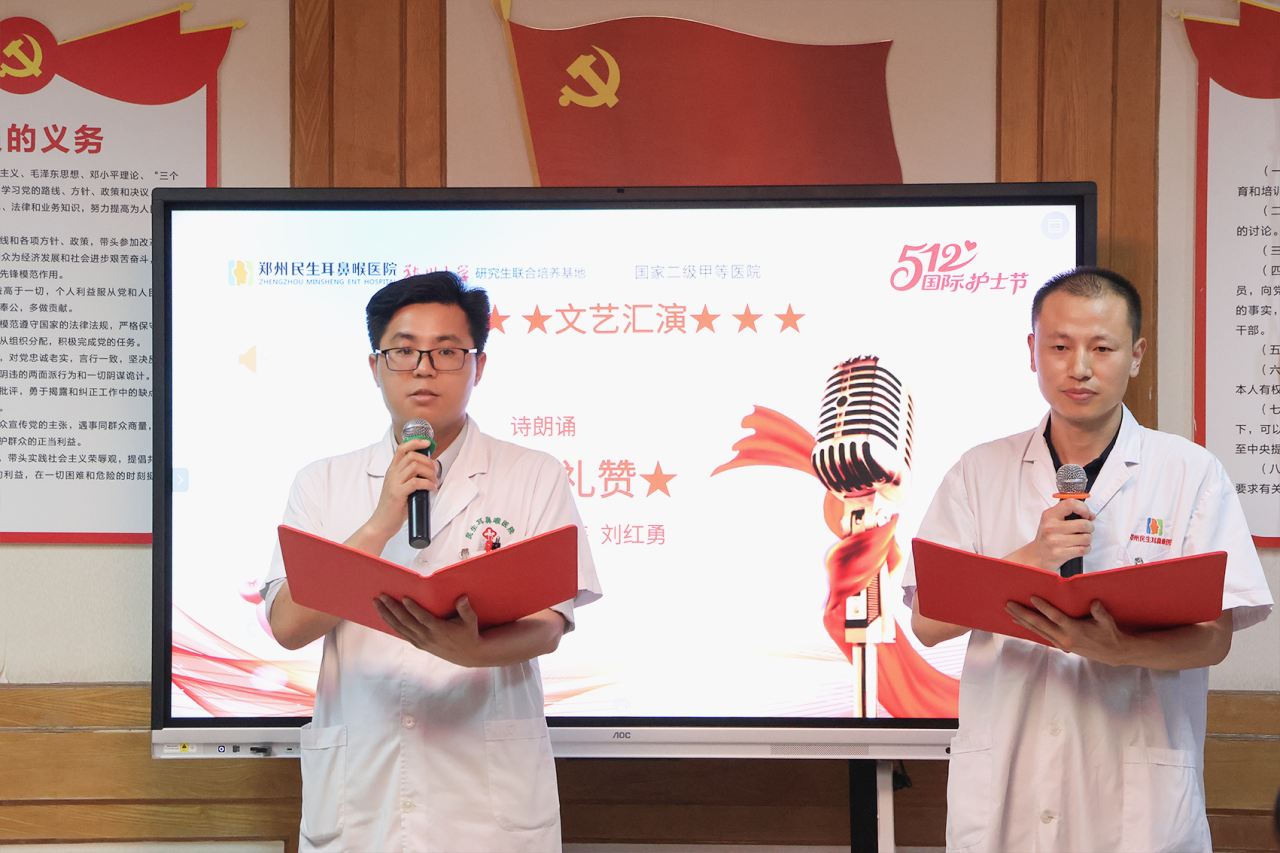诗朗诵《白衣礼赞》由王龙海主任、刘红勇主任携手献上,用深情语言致敬每一位在平凡中坚持、在细节中绽放的护理工作者。