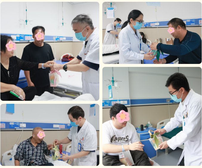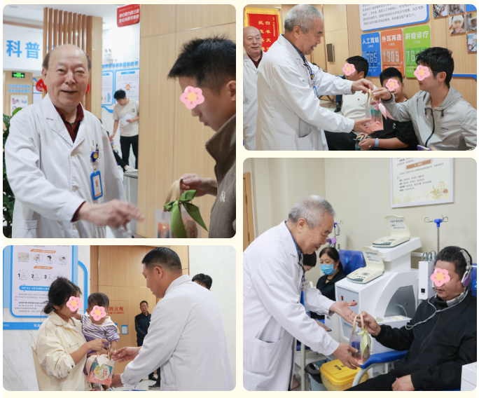 叶真教授、权烽炬主任带领下,门诊医生也同步为就诊和治疗的患者送上月饼与祝福,让每一位患者都感受到